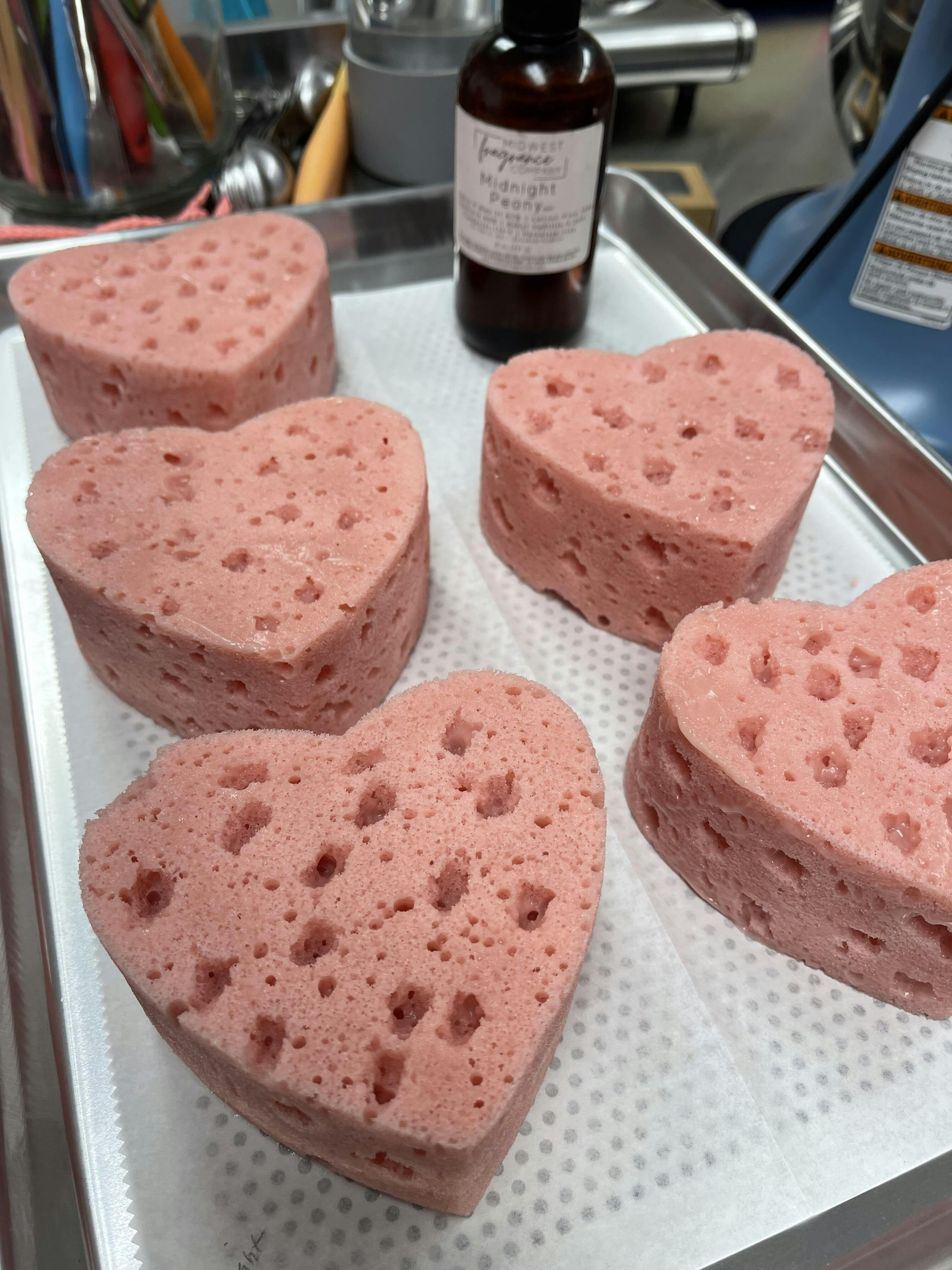 Love these heart sponges! They are thicker than I thought and had to order larger shrink wrap lol.
